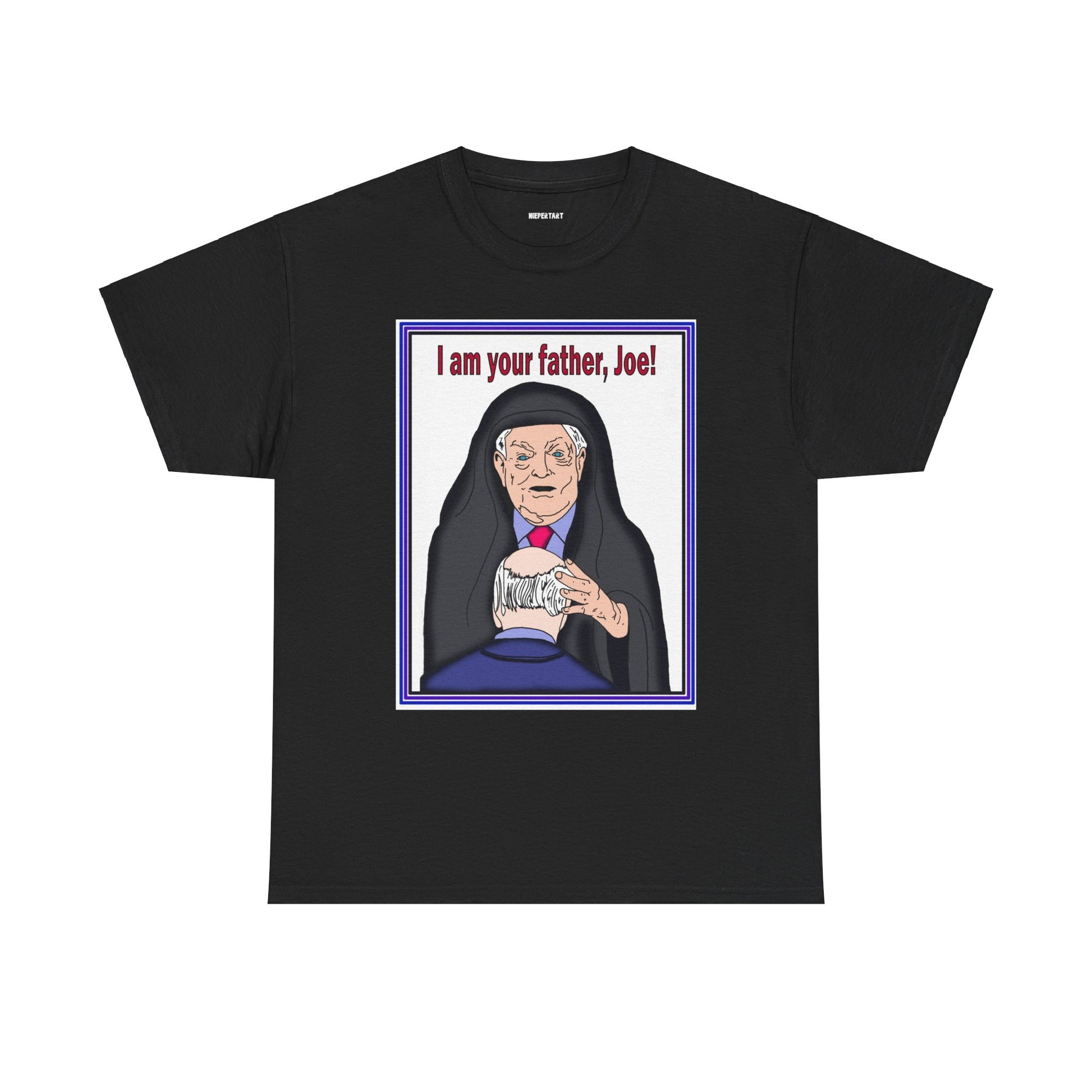 "I am your father, Joe" t-shirt. This political satire t-shirt depicts the evil, dark lord, George Soros, telling Joe Biden that he is his father. Get laughs at the party with this funny conservative t-shirt.